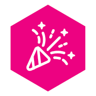 Arrange the two party table cards to form a complete image. Place the six coaster cutouts on top of the blank coaster places so the confetti streamers line up. This forms long blue streamer paths, each of which connects to one of the letters in NEWYEAR. The only letter with a complete blue streamer path to the puzzle symbol is E.